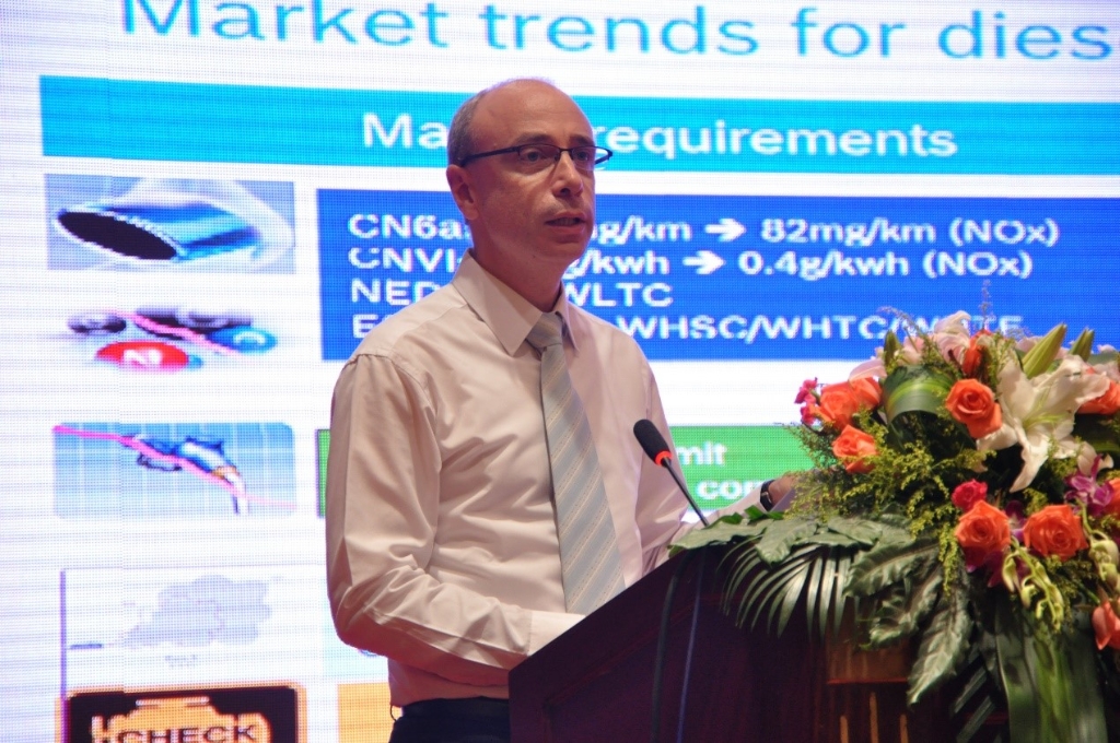 其次 ,北京理工大学教授葛蕴珊、天津检测所发动机室主任景晓军针对轻型、重型商用车国Ⅵ排放标准进行了解析;博世汽车柴油系统有限公司技术总监邓永翰、霍尼韦尔汽车零部件效劳(上海)有限公司总经理金晨海针对现在柴油机上所使用的高压共轨技术和可变截面涡轮增压技术进行了说明 ,与此同时 ,两位嘉宾也针对这两大技术与XPJ动力相助的情况进行了介绍。
